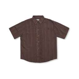 This shirt features front pleats that add subtle texture and shape. The slightly asymmetrical button design gives it a modern touch, while the envelope chest pocket adds a small playful detail — creating a balance between clean style and youthful charm.